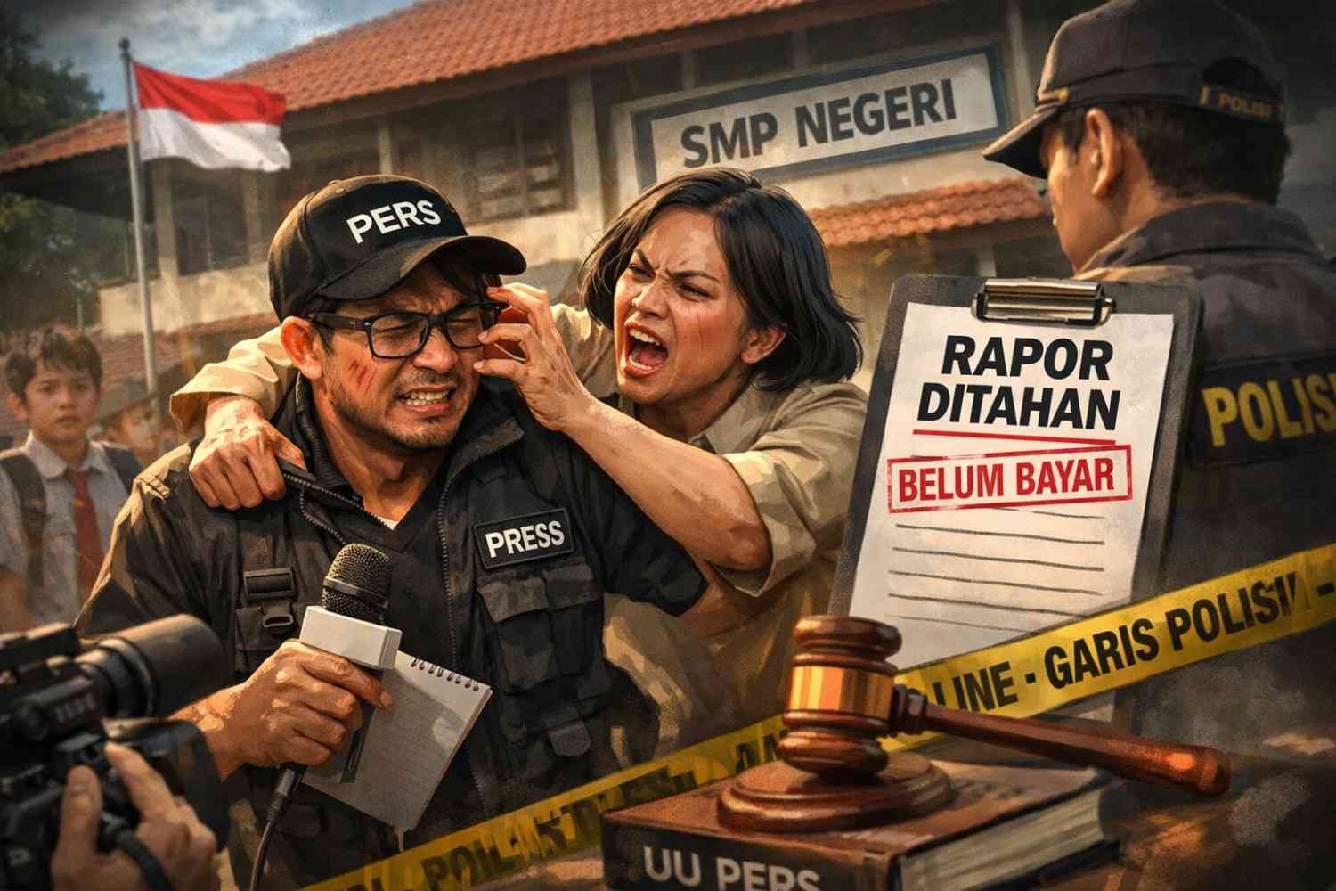 Namun, alih-alih mendapatkan penjelasan yang objektif, upaya konfirmasi tersebut justru berujung pada insiden yang memprihatinkan. Berdasarkan keterangan korban, saat wartawan mempertanyakan dasar penarikan biaya dan mekanisme pembayaran map rapor, salah satu oknum di lingkungan sekolah menunjukkan reaksi emosional berlebihan. Oknum tersebut diduga berteriak, menangis, hingga melakukan tindakan fisik berupa mencakar tubuh dan memukul wartawan.
